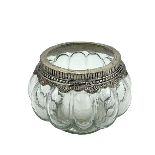 • Vintage Windlicht aus Glas mit Metallrand (Kerze gehört nicht zum Lieferumfang)