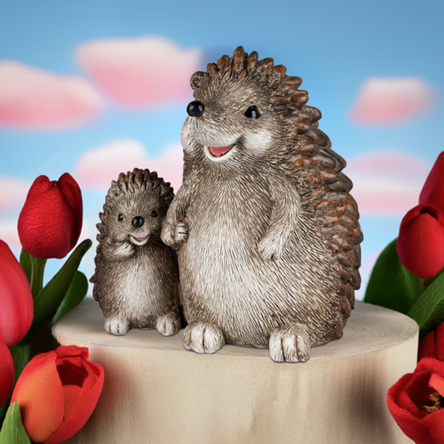 Die Igel sind in einer harmonischen Pose gestaltet und strahlen eine freundliche, verspielte Atmosphäre aus. Sie eignen sich perfekt als dekoratives Element für den Garten, die Terrasse oder als süßes Accessoire im Innenbereich. Ob als Geschenk für Tierliebhaber oder als Blickfang in Ihrer eigenen Einrichtung – dieses Igelpaar bringt Freude und einen Hauch von Natur in jeden Raum.