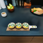 Maße: Tablett 41 x 12 x 6 cm - Schalen Ø 9,5 x 4 cm