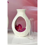 Die Vase Prisma in elegantem Creme überzeugt durch ihr außergewöhnliches Design mit offener Form und feiner Rillenstruktur. Das integrierte Reagenzglas aus Glas setzt einzelne Blumen, Zweige oder Trockenblumen stilvoll in Szene und verleiht der Vase eine moderne, luftige Note.