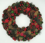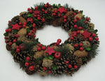 Der Kranz hat einen Durchmesser von ca. 46 cm und besteht aus einer Kombination aus Natur- und Kunstmaterialien wie Tanne, Beeren und Zapfen. Er eignet sich auch hervorragend als Geschenk oder Mitbringsel für Freunde und Familie.
