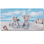 Lieferumfang: 1 Wandbild Fahrräder am Strand 30x60cm mit vielen kleinen Details auf Leinwand, Handgemalt