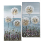 Lieferumfang: 2 Wandbilder Pusteblumen 30x60cm mit vielen kleinen Details auf Leinwand, Handgemalt
