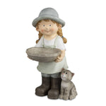 Lieferumfang: 1 Garten Dekofigur Sommerkind Junge oder Mädchen mit Schale und Haustier handbemalt